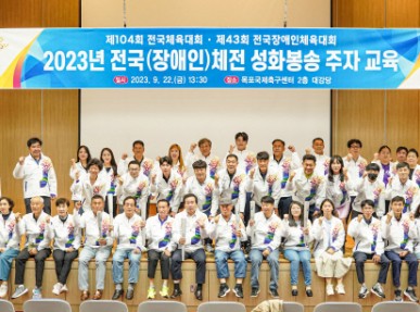 목포시가 제104회 전국체전 및 제43회 전국장애인체전 성화봉송 주자를 대상으로 지난 22일 목포국제축구센터에서 교육을 진..