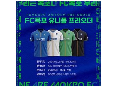 FC목포 2024시즌 유니폼 프리오더 안내⠀판매기간 : 2024.02.05(월) ~ 2024.02.13(화)판매상품 : 필..