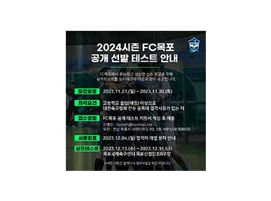 올해 K3리그 준우승을 차지한 세미프로 FC목포가 공개 테스트를 통해 선수 발굴에 나선다.FC목포는 오는 30일..