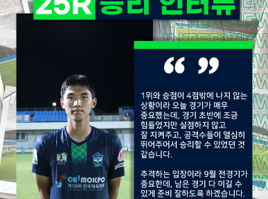 지난 9/9(토) 창원시청전 세번째 골의 주인공이자 방파제 같은 수비를 해주고 있는 노동건 선수의 승리 인터뷰..