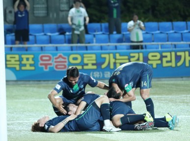 FC목포 축구단이 양주시민축구단과의 경기에서 결승골을 넣으며 1대 0으로 이겨 2위로 순위를 껑충 뛰어올렸다.지난 2일 목..