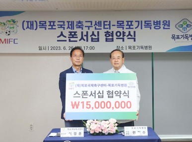 목포국제축구센터와 목포기독병원이 최근 시민 건강 증진을 위한 스폰서십 협약을 체결했다.양 기관은 시민에게 건강한..